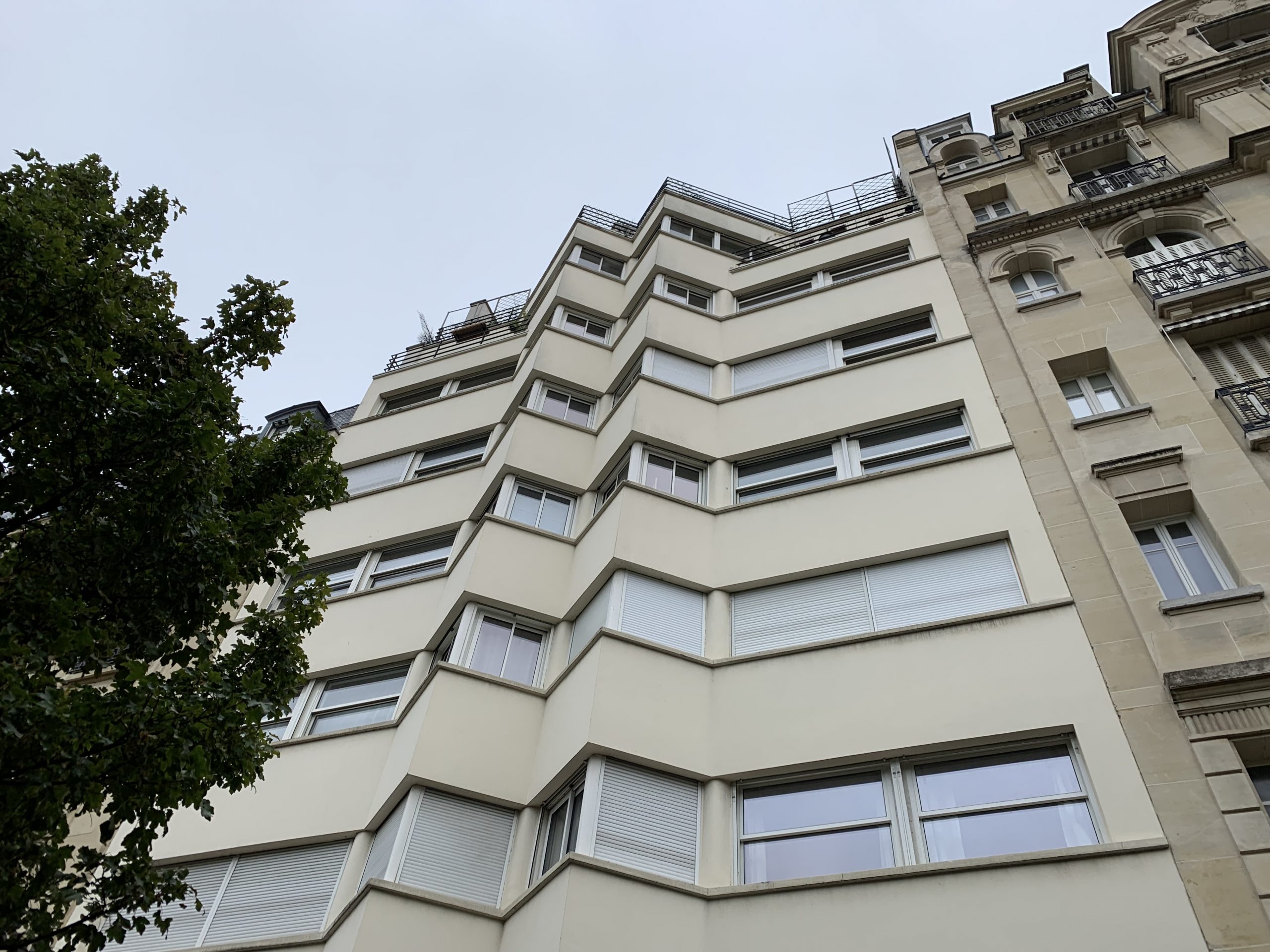Au 5èmé étage d’un immeuble art déco des années 30 avec ascenseur.