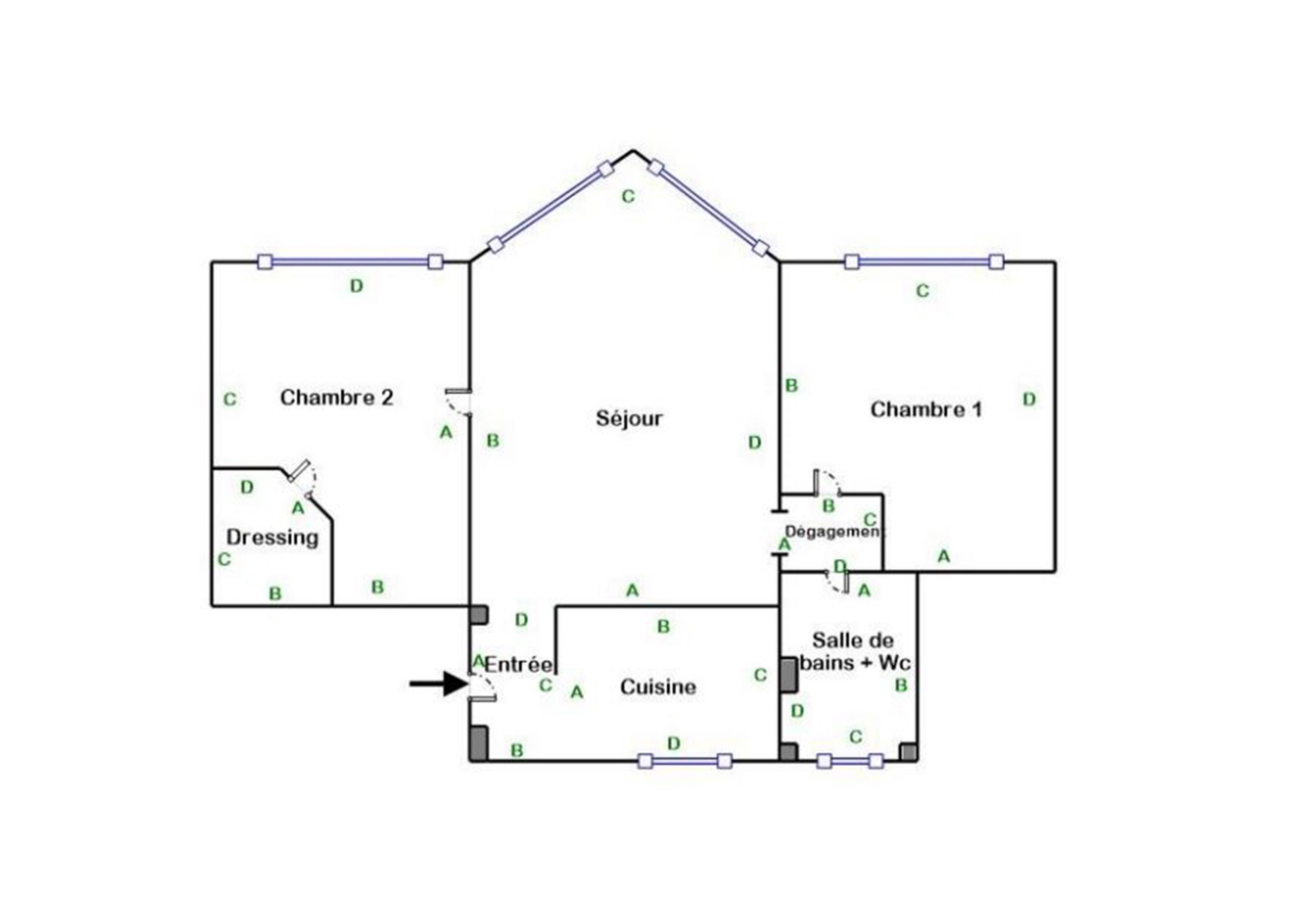 Parquet massif, double vitrage avec volets électriques. Nombreuses fenêtres, très lumineux au plan idéal sans aucune perte de place, calme et ensoleillé.